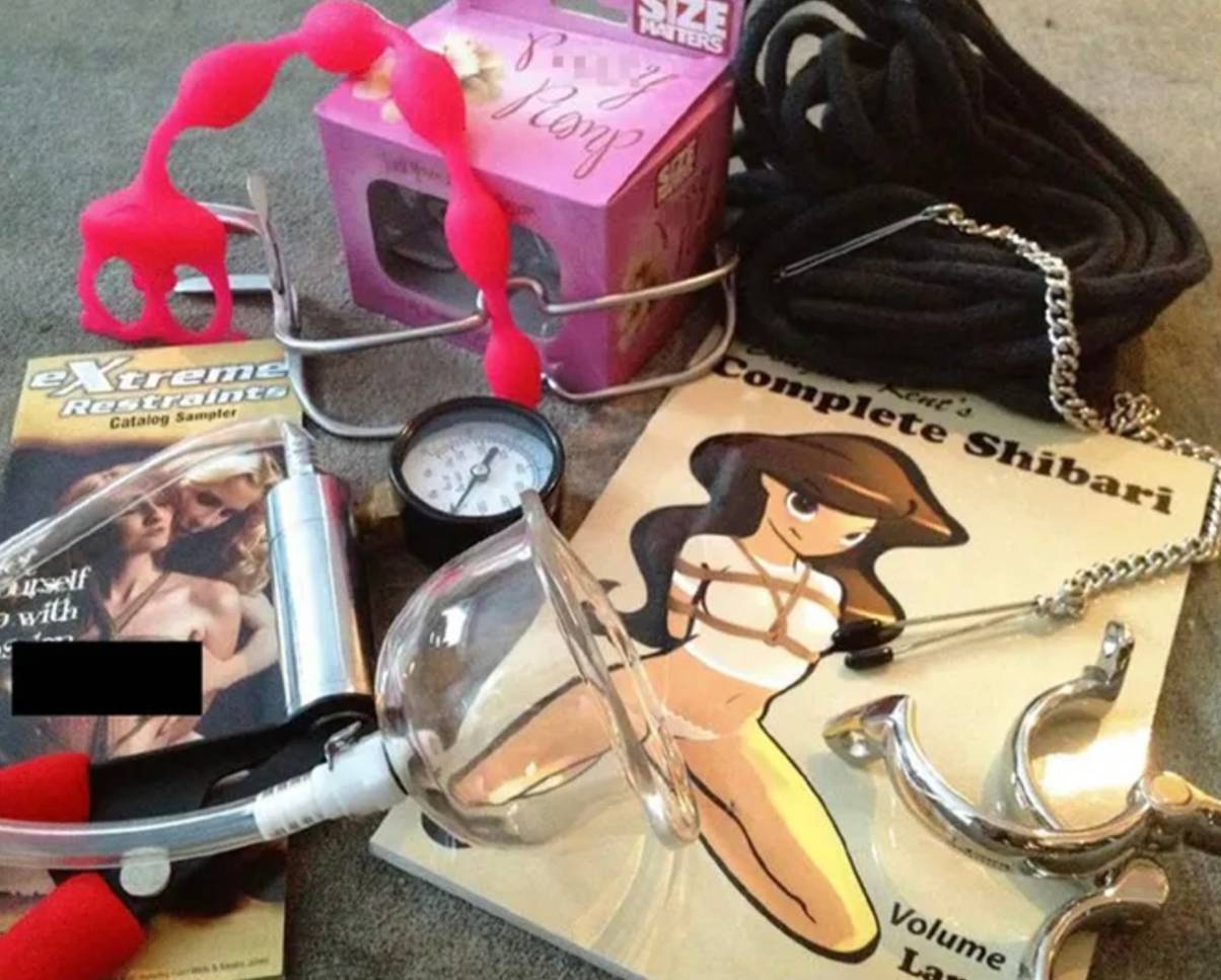 There have been additionally some bondage ropes and what seemed to be a pair of handcuffs.