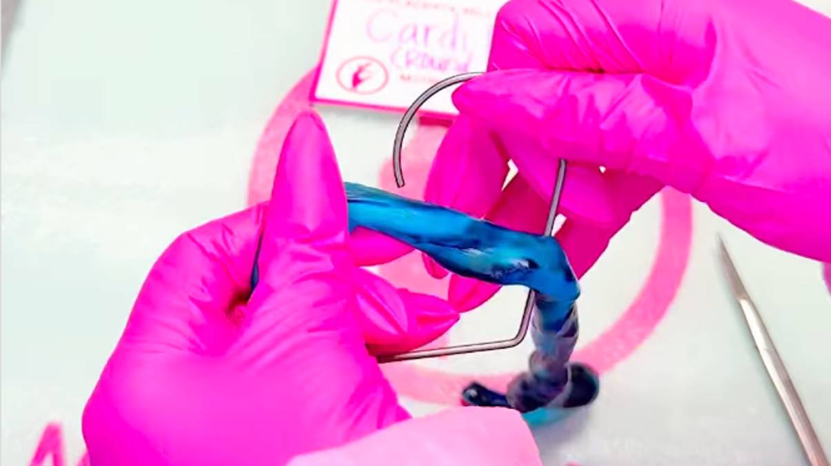In a later video, she may very well be seen taking the umbilical wire, which was dyed blue, and slicing it down the center to make an incision, earlier than utilizing a heart-shaped wire, inserting it by means of the wire to type the design.