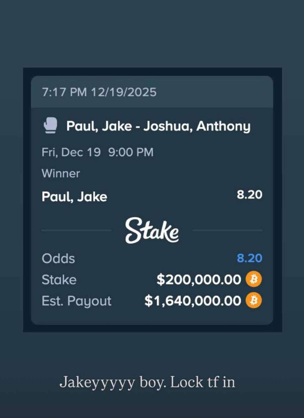 He additionally backed Francis Ngannou $615,000 (£460,000) earlier than AJ beat him within the second spherical. Drake shared his wager earlier than the battle yesterday on Instagram Tales, writing: “Jakeyyyyy boy. Lock tf in.”
