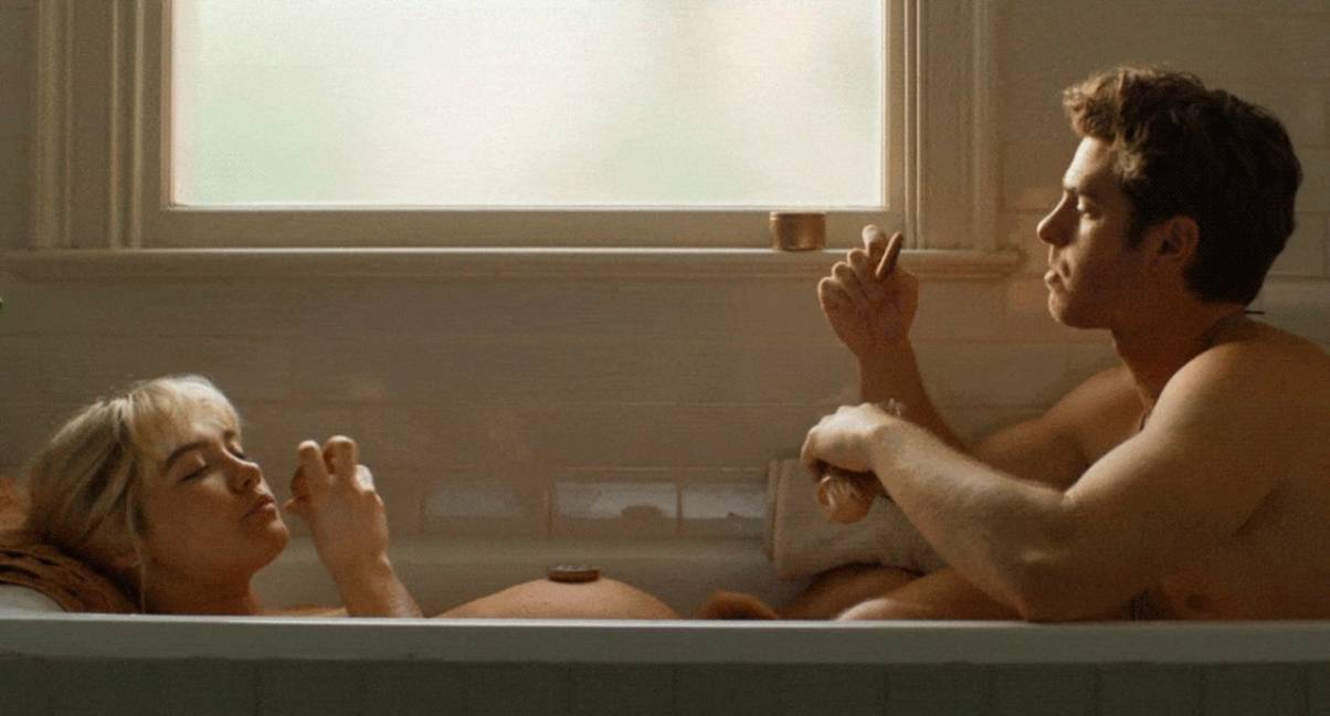 She’s rolled across the sheets on display with Hollywood heart-throbs similar to Andrew Garfield and Cillian Murphy prior to now, so Pugh is fairly well-versed within the apply of feigning fornication.
