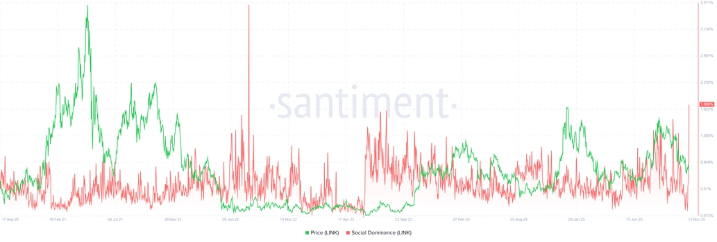 The Santiment data further reinforces optimism as Chainlink’s social dominance metric surges. It jumped from 0.15% on Saturday to 1.89% on Wednesday, reaching its highest level since July 2022. The increase shows growing commitment and renewed discussions about the project’s latest program.